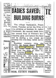 Later Sol opened other tailor shops. He moved his shop several times over the next 30 years. Some of the moves were financially motivated (he was avoiding paying rent). He moved from Newport in 1913 to Carthage, Ohio, and then, to Addyston, Ohio in 1915. He moved from Addyston to Cincinnati because of a devastating fire in 1915 that burned down his place of business as well as the family living quarters. The fire was reported in the Cincinnati Post of November 24, 1915:
