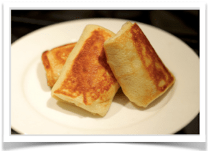 - Heat an 8″ teflon skillet & grease it with Crisco.